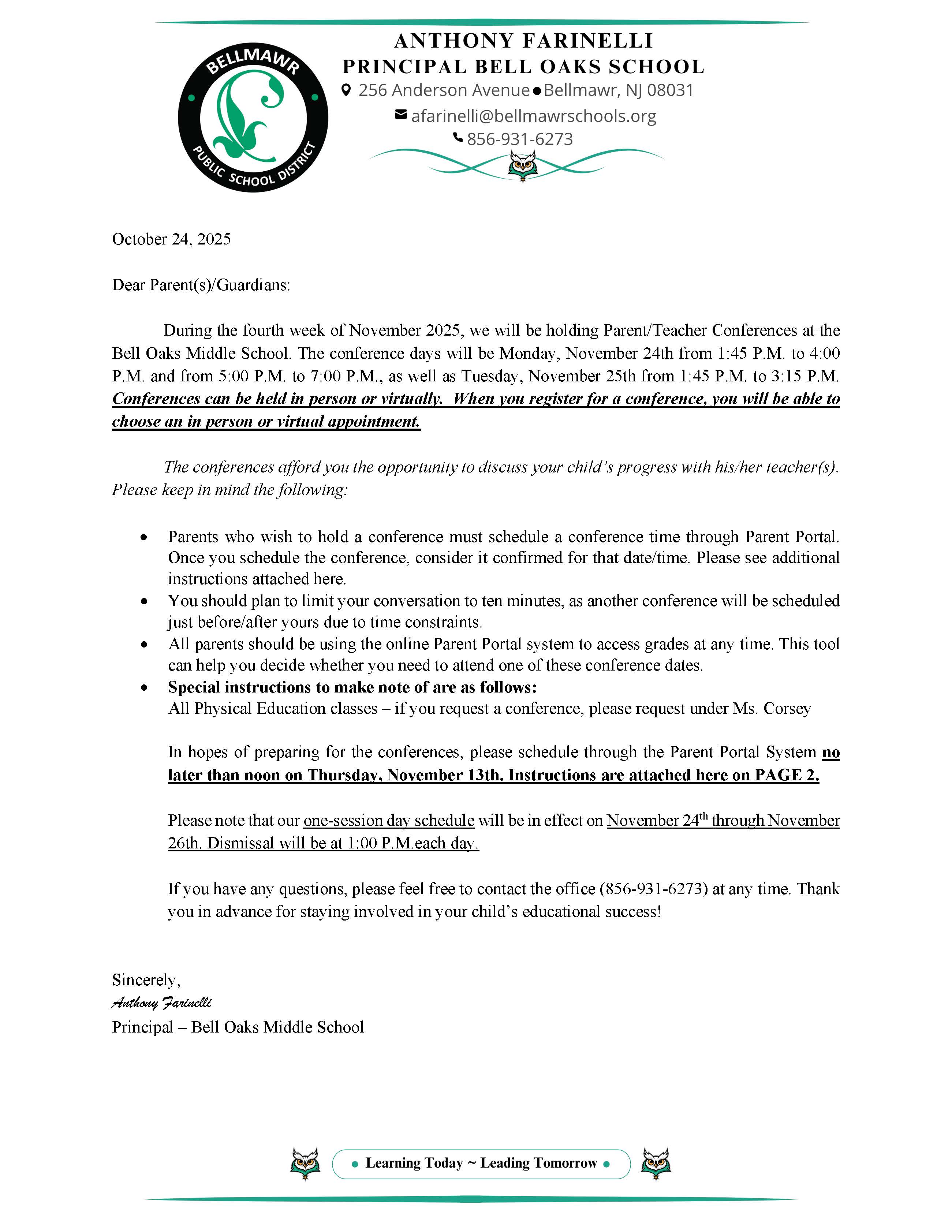 A Message from Mr. Farinelli, Principal